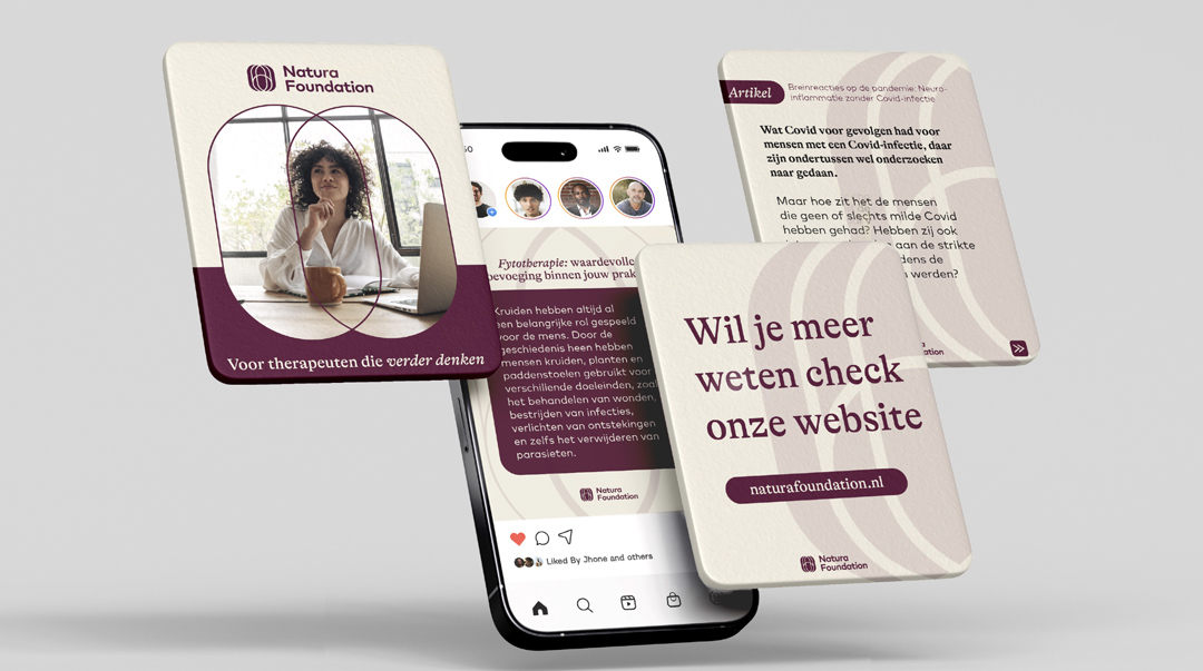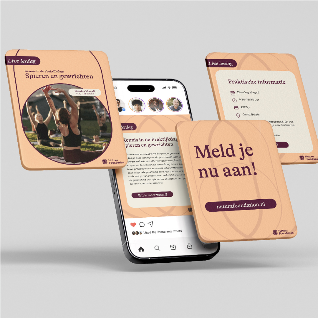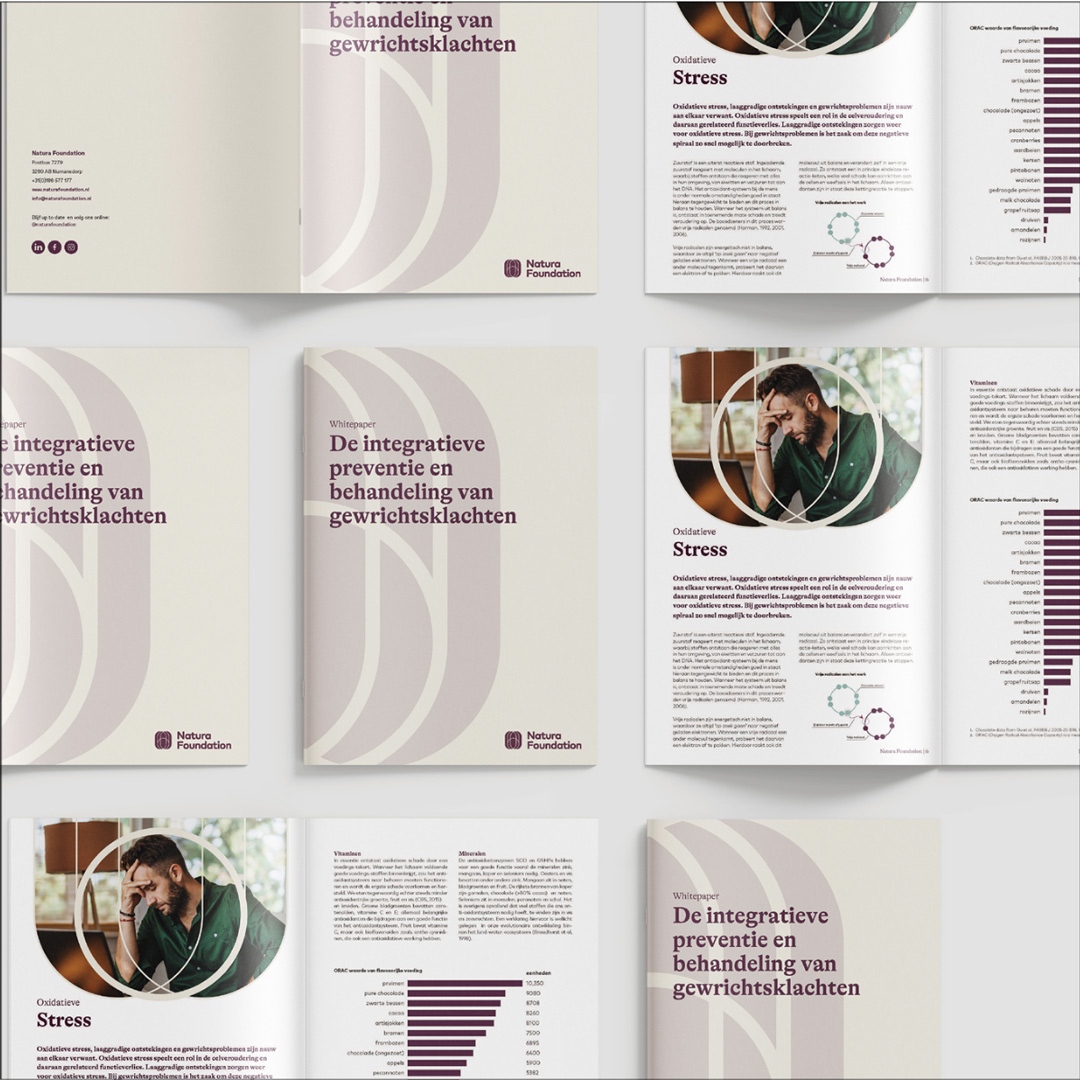 Ik ontwikkelde social content die het merk herkenbaar en consistent maakt, nieuwsbrieven die de doelgroep informeren én inspireren, en whitepapers die de expertise van Natura Foundation onderstrepen. Elk ontwerp was afgestemd op de merkwaarden en zorgvuldig geoptimaliseerd voor zowel print als online gebruik.